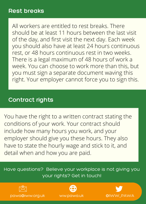 - Support from your local branch and the IWW Care Workers Organising Network to build power and tackle issues alongside other workers across the industry.